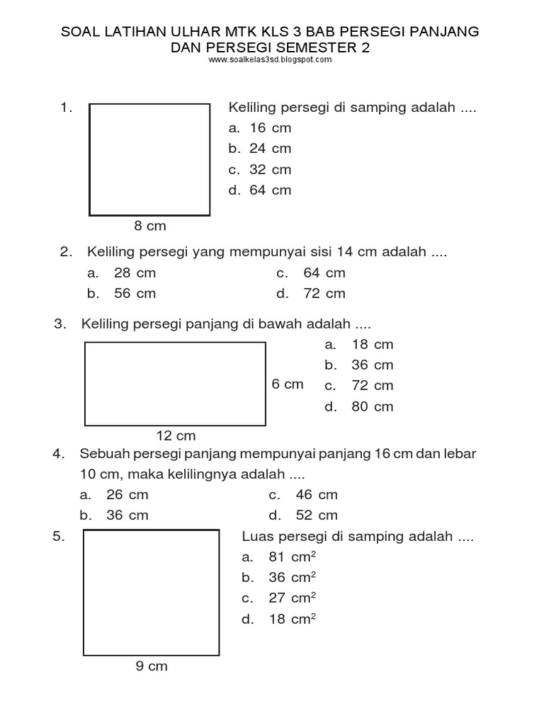 Soal Luas Dan Keliling Kelas 3 Sd